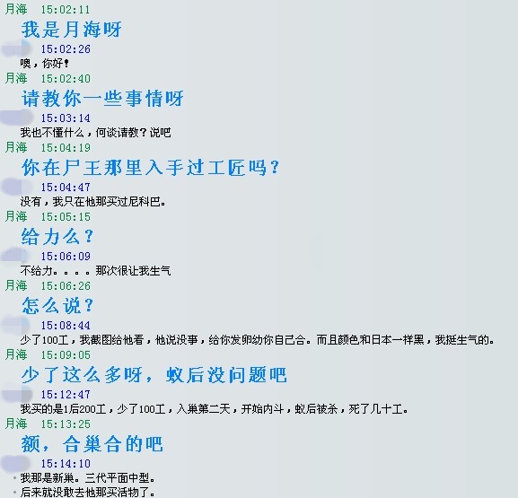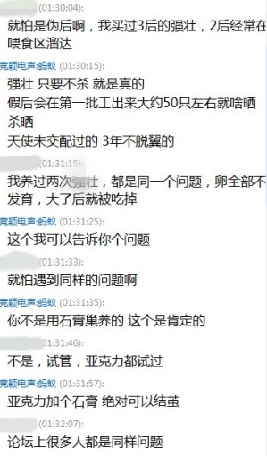 原来蚁友禁不住诱惑,在尸王那里入了此种蚁,买到后发现货不对品,远远不值那些钱,想想罢了,谁知有人竟验明此蚁身份,廉价而物美!