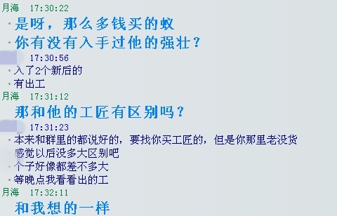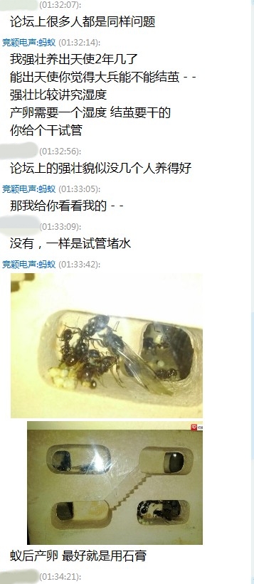 呵呵,上次看到他那宣战贴就反感,贾火那明显的区别,就算我之前没见过,光看他淘宝上的图片就知道不是弓背属,特征太明显了。月海你记不记得上个月路卡的帖子我留言说我在他那入了一窝工匠还没到,后来到家后工不少 40 绝对有,但是都是小工,很小的那种。可是幼虫明显是大工,中工。一个小工搬起来都费力,我养蚂蚁这么久,真没见过这样出工的,体形差别怎么可能突然变的这么大!一只小工的幼虫和裸蛹都没,都是大家伙,当时就怀疑是合的。而且蚁后老爱乱跑,吓死我了,真以为是伪后,不过现在产卵了,希望没问题,等出工吧。是不是工匠我看不出来,强壮我不了解对比不了,现在不奢望品种了,能把她们养好就成。在论坛贴吧我都不敢说这事,喷子太多受不了。