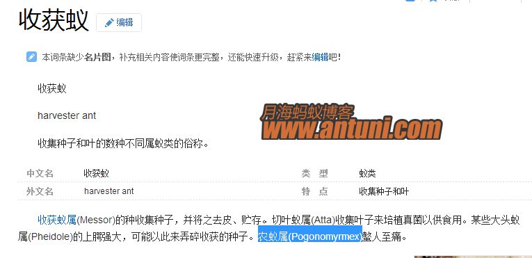和当时已经流入国内来自轩的红头收获蚁(messor barbarus)和国内自产的针毛/粗面收获蚁(messor aciculatus)是相同的属名。