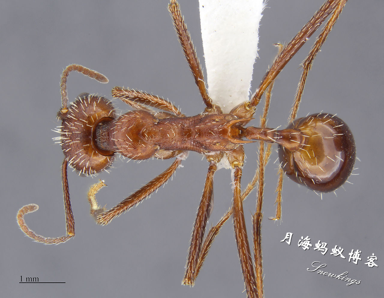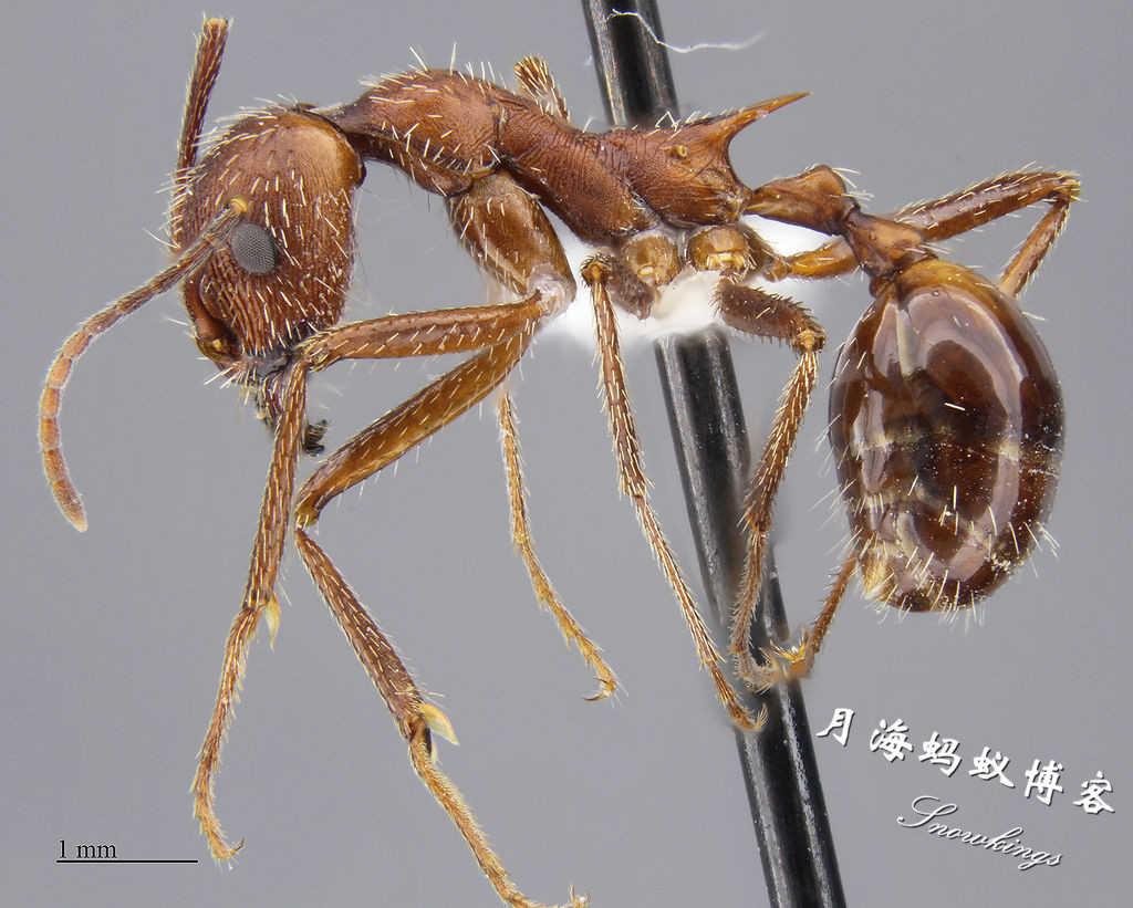 所以,我只好不厚道地将它译为“白毛新收获蚁”了。